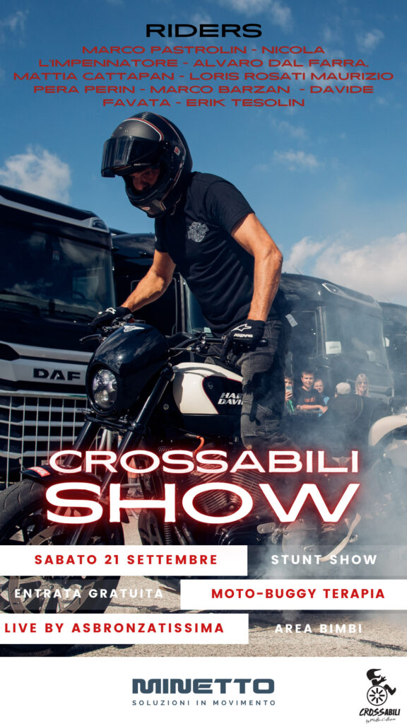 Adrenalina, impegno sociale e tanto divertimento, letteralmente per tutti: ritorna CROSSabili Show per il Sociale. Per questa nuova edizione è previsto un fitto programma con tante attività tra cui stunt show con otto piloti di fama internazionale, moto e buggy terapia, tanti momenti conviviali e pure un concerto live di Asbronzatissimi.